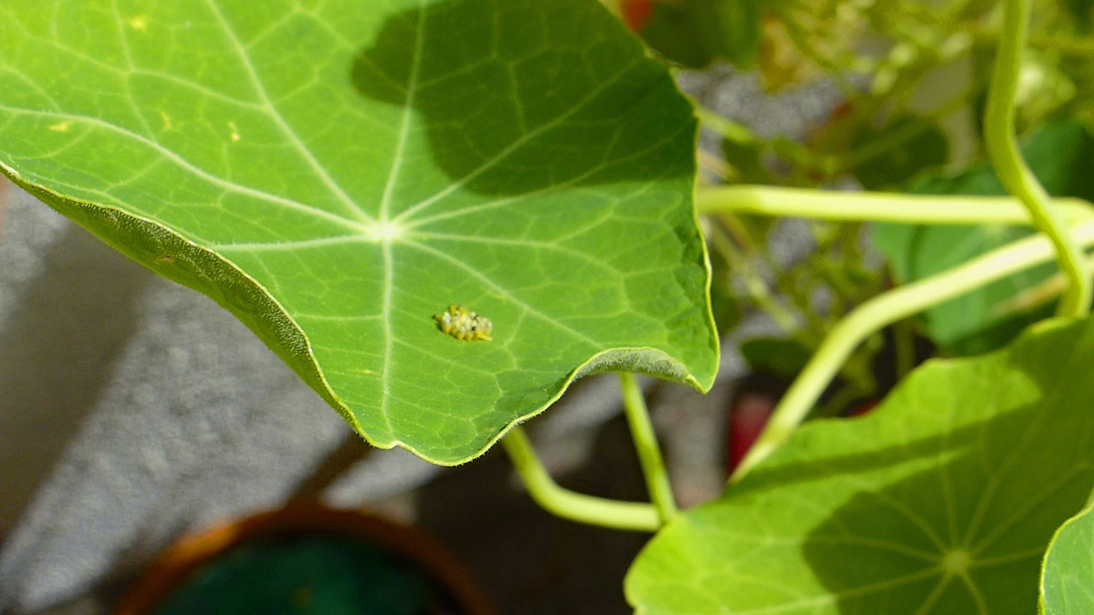 Köönigskinner noch dree Bläder von de Kapuziner Kresse,