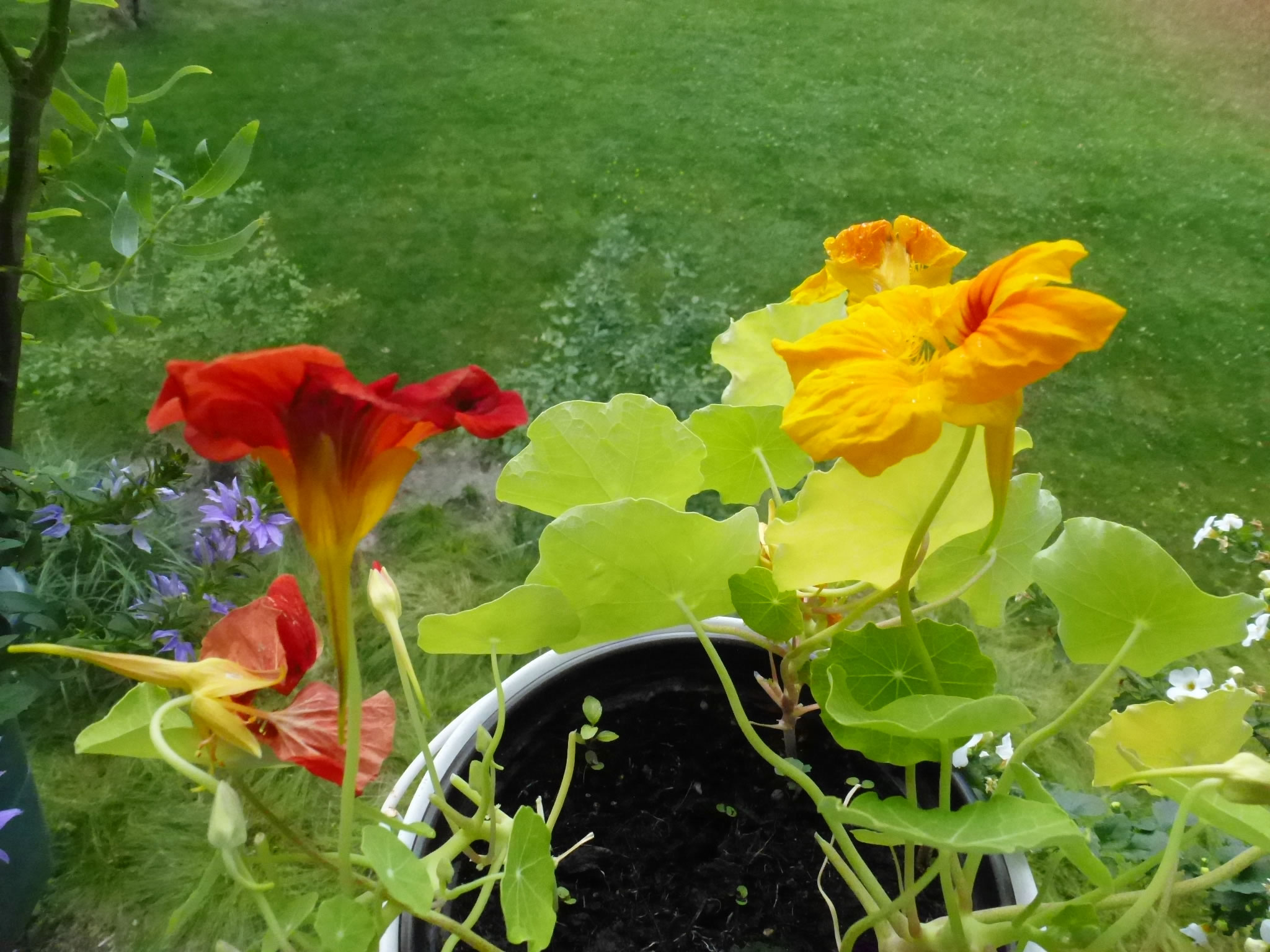 Op'n Balkon in Blomenkasten wull ik Kapuzinerkresse utseihn. Ik heff Samen schenkt kregen. Dat warrt en echtes Vergnögen, sä ik mi. Ik kunn de Tiet goor nich aftöven, un denn kemen se endlich doch: De eersten Kresse-Blöden in Geel un lüchten Root!