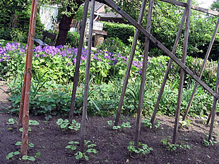 Tweeunhalf Meter lange Holtstangen hett he buut un in de Eerd steken,