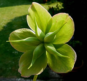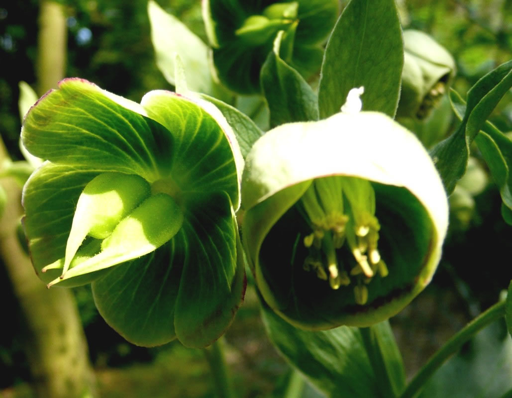 Na'n poor Daag harrn de beiden Bloom al ehr Blöden upmaakt. Se weern al so groot, dat en lütt Deern de roden un witten Blöden wies wöör. Se wull glieks welk plücken. Dat harr ehr Modder ut dat Kökenfinster mitkregen. Mit Sorg in de Stimm reep se: "Nich mit de nakelten Hannen anfaten, de Bloom sünd bannig giftig!" "Ok de witten Bloom?" fraag de lütt Deern, "dat sünd doch Christrosen!"