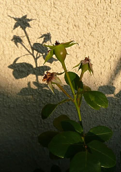 Nu harr de Goorner ehr Naversch ok en Band üm den Stock bunnen. Se höör up den vörnehm Namen "Lady Hamilton". Vun dor an dröög se den Kopp noch höger un snack mit de lütt Roos keen Wort mehr. An neegsten Dag kemen de Goorners un buddeln "Lady Hamilton" ut. Se güng ok up de grote Reis. Endlich kunn de lütt Roos wedder Luft halen. Se möök sik richtig breet. Ehr Telgen strecken sik in de Hööcht un setten glieks Knuppen an. An annern Dag kreeg se Besöök vun en poor Dacklünken. De vertellen sik dat Nieste vun de Welt. De en Dacklünk harr tokeken, as de Rosenstöck in en groot Lastauto packt wöörn. En anner Dacklünk wüss, dat de Rosenstöck in enen groten Park kamen sullen. Wenn se doch man ok eerst so groot weer un enen Namen kreeg! Denn kunn se seker ok up Reisen gahn. Sünnenschien un Regen wesseln sik af un leten uns lütt Roos in de letzten Weken düchtig ranwassen. Se harr dorbi richtig Wehdaag in ehr Telgen. En Knuppen na den annern keem an't Dageslicht. An annern Dag weer een Knuppen upblööt. Se weer över sik sülvst verdattert. So'n smucke Blööt harr se sik nich totruut.