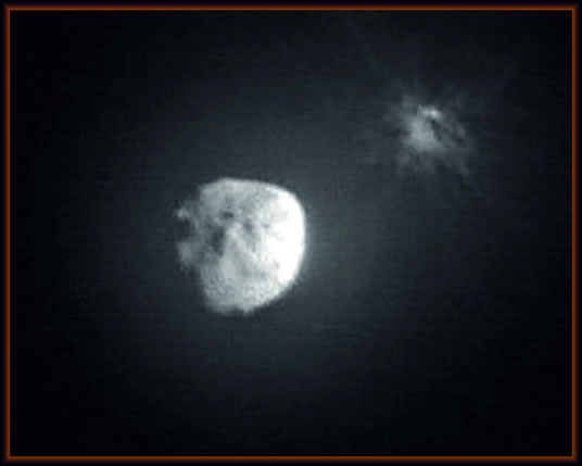 In dat rechte Bild sühst: Dei Punkt, dei dat Didymos-Dimorphos-System