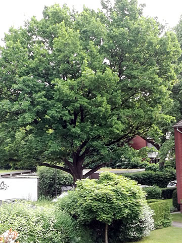 mi, dat ik as Morgenmuffel Tiet un Roh heff, mi allens antokieken. Op de annere Siet vun uns Wohnung steiht de Eek, siet 50 Johren. Dat gifft en Geschicht vun enen Buurn un den Dübel: