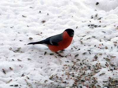 Vör mien Kökenfinster steiht 'n Fleederbusch. An een vun de Telgen hangt en Fodderputt för all de lütten Vagels, de in'n Winter nich noog in de free Natuur find. As Napp heff ik en leddige Kokosnutt anbunnen, bi de ik vörher bloots 'n Stück vun de Schell rutsoogt heff. Den Napp befüll ik tweemol an Dag mit Sünnbloomkernels un Pienööt. Dat hett sik bi de Piepmatschen in uns Rebeet rümsproken. Du mookst di jo keen Vörstellung, wat för'n Leben sik nu in uns Fleeder afspeelt. Ik kann dor stünnenlang tokieken. An scheunsten sünd jo de Gimpels und liek so, as bi uns Minschen, sünd dat sünnerlich de Mannslüüd. Wat hebbt de doch för Farven, üm de Vageldeerns rümtokriegen! Na du weets all, wat ik meen. Annerlest weer ik obers sowiet un wull de Nutt wedder afbinnen. De dorige Doompaap sitt dor de hele Tiet breed un bräsig op den Rand un mookt de annern Vagels ok denn keen Platz, wenn he lang satt weer. Ut luder Jux un Tolleree fung he denn an, de Nööt un de Sünnblomen öber den Rand to smieten. So geiht man doch mit Eten nich üm! Dat hebbt wi in de Nokriegstiet anners leernt. Sowat is jo de reinste Verswennung! Doröber heff mi orrig opreegt. Ok so'n Piepmatsche mutt doch so veel Verstand in sien lütten Kopp hebben, dat he weet, mit Eten speelt man nich.