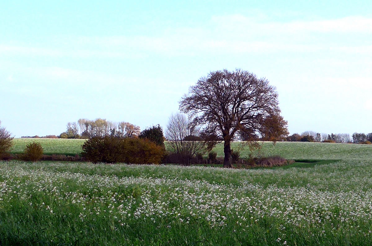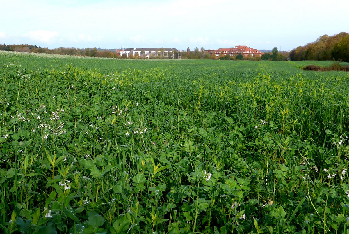 Blots för korte Tiet geev dat düssen Harvst Stoppelfeller. De Oorn weer bi dat gode Weder fröh inbröcht woorn. Glieks dorna wöör de Grööndünger utseit. Dat geev keen Gelegenheit för de Kinner to'n Drakenflegen. De Tieden hebbt sik ännert. Överall kunn man gröne Feller bewunnern. Welk lüchen ok in Witt un in Geel. Ik stell mi de Fraag: Blööt dor de Raps? De Harvstlandschap weer nich blots gröön, se weer bunt! Wo kunn dat angahn? Ut mien Kinnertiet kenn ik blots de lütte junge gröne Saat. Sehg meist en Rasen liek. Mit mien Opa bün ik na de verscheeden Koppeln gahn un heff keken, wi dat Koorn, de junge Saat steiht. De verännerte Harvstlandschap hett mi nescheerig maakt. Ik müss doch rutkriegen, wat dat allens för Planten weern! In'n letzten Harvst harr ik al up Opas Biohoff den Semp, Klever un de Facelia kennen lehrt. Opa harr mi en Nahölpstunn geven. He verwenn keen Kunstdünger, he nehm Grööndünger. Nu harr ik en witt blöhend Feld sehn un dorneven en grönes mit hoge Planten. Dat wittblöhende Feld weer Oelrettich. De hoge gröne Plant mit de groten grönen Bläder weer Ramtillkruut. De Blöden sünd geel. Ik heff se noch nich blöhen sehn. Se keem ut Äthiopien un erinner mi an Mais. Wat harr sik in mien Leven al allens ännert! Ümmer mehr begriep ik, dat de Grööndünger för uns Land wichtig is. De Gröönplanten deckt de Eer to, schütt se vör dat Utdrögen, un de Storm kann dat dröge Land nich wegpussen. Se hebbt depe Wötteln un maakt dormit den Acker locker, de vun grote un swore Maschinen tosamendrückt woorn is. Dat Unkruut hett keen Schangs, sik breet to maken. In't Fröhjohr warrt de Planten denn noch ünnerplöögt un geevt den Acker Kraft.