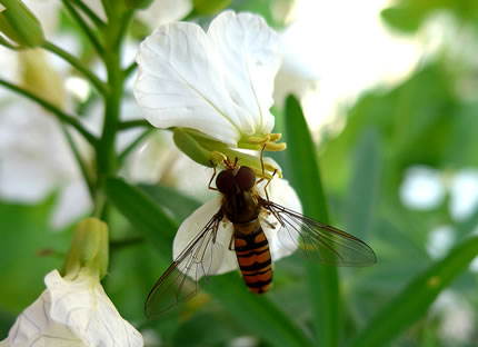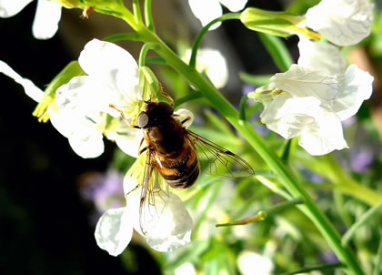 För mi is dat Schöönste: de Planten seht ok noch smuck ut. Wenn in de griese Harvsttiet de Storm över de kahlen Felder puust, smückt de verscheden Planten de Natuur mit farvig Blöden. Ik heff mi al mennig Blomenstruß plückt. Dorbi heff ik denn ok mitkregen, dat an den Ackerrand Mischgrööntüüch utseit weer. Besünners smuck weern de verscheden farvig Peluschken, ok Futterarven nöömt. De witte Oelrettich lock bi Sünnenschien in November noch enige Insekten an. Bi mi up den Blomenstruß heff ik Winterschwevfleegen bekieken kunnt. De Winterschweevfleeg ok Hainschweevfleeg weer "Insekt des Jahres" 2004. En lütte Keilschweevfleeg harr sik ok noch vun de Blomen anlocken laten. Dörch de zarten transparenten Flünken lüüch de Sünnenschien. Un dat allens in den Novembermaand! 23.11.2014