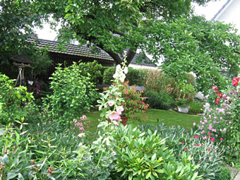 Achter uns Goorn is en grote Wildgoorn, Brommelbeerbüsche wasst dor tohoop, mien Mann höllt jümmer en breden Striepen free, dormit de Brommelberen nich ok noch in uns Goorn sik breed moken. För de Deerten is dat en Paradies, vele köönt dor goot överwintern un sik versteken. Bi uns kümmt ok en Fasanhohn mit sien twee or dree Hennen an,