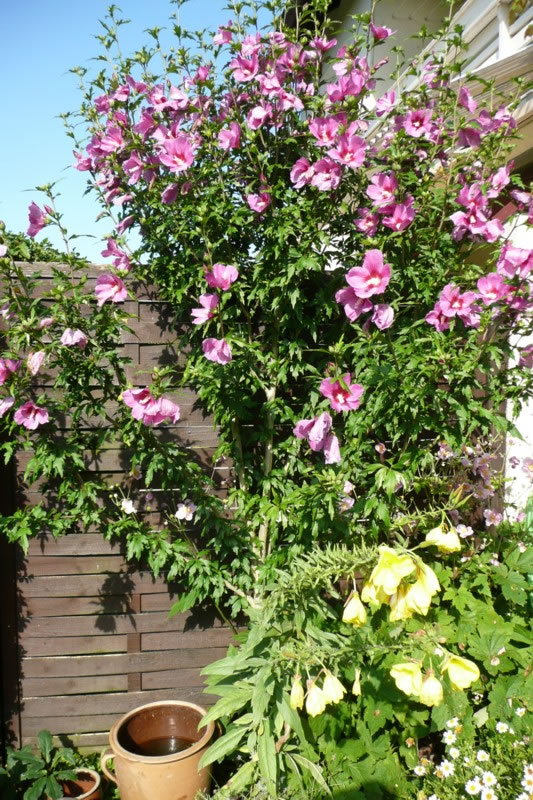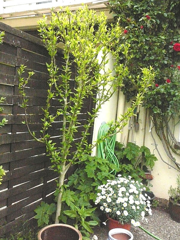 De Blick ut dat Finster in de Wintertiet hett mi wat Nieges bibröcht. Nu wüss ik, dat luder lütte Hibiskusplanten ut de Steenritzen wussen, dat weer keen Unkruut! Vun dor an heff ik för mien Goornfrünnen Hibiskusbööm trocken. Wenn een vun de Frünnen Borsdag harr, kreeg he vun mi enen lütten Goornhibiskus schinkt. |