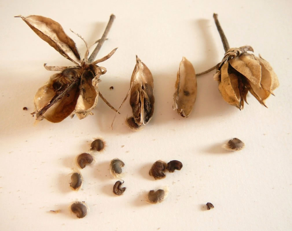 fallt af. Niege Planten kann man vun Aflegger un ok vun Samen trecken. In de Samenkapseln sünd över twintig Samenkoorns. Wenn wi kenen strengen Winter hebbt, kümmt in't Fröhjohr meist ut jedeen Samenkorn en niege lütte Plant. De Hibiskusblöden sünd heel beleevt. Se warrt dröögt