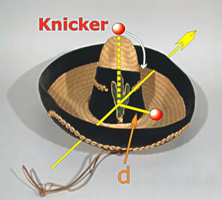 un wennen, aohne dat dor wat taun Mäten bi rutkump. Dat lutt ansik orig einfach. Schaode blots, dat disse Symmetrie verstäken is. Dat kann man sik vörstellen as einen Knicker, den man baoben middig up einen Mexkaonerhaut mit eine breie Krempen legg (süh Bild). Disse orig symmetrischke Taustand geiht aover drocke twei: Dei Knicker kullert van Baoben daol un bliff up eine wisse Stäe in dei Krempen liggen. Wenn Haut un Krempen perfekt rotatschionssymmetrischk sünd, is datn echten Taufall, of dei Knicker upn End rechts, lünks, achtern of vörne ligg. Dorup kump et uk nich an, blots dorup, dat dei Knicker eine Richtung wiest un so dei Symmerie flüsch geiht, wo doch eiers aale Richtungen den süftigen Rang hebbet. Dor sägg man denn spontaonet Symmetriebräken tau. För us is blots dei asymmetrischke Taustand tau seihn. Wo dei woahre Symmetrie dei Mexikaonerhaut utsüht, dat wätet wi nich.