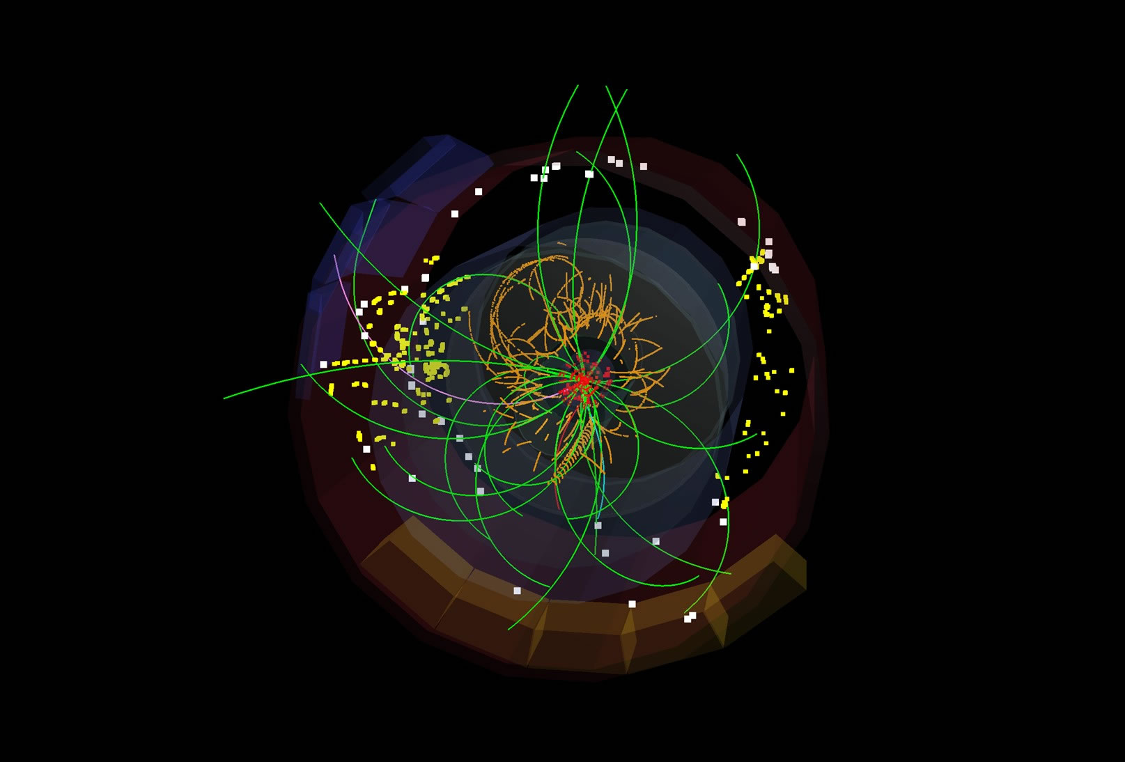 Dei bi dei Kollision van twei Protonen afgäben Energie ist för ehre Grötte weust groot in'n Vergliek mit use normaole woahrnaohmen Welt minne. Dat is as wenn twei Müggen bi't Fleigen tausaomestötet.