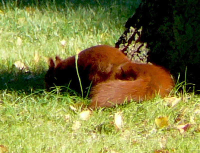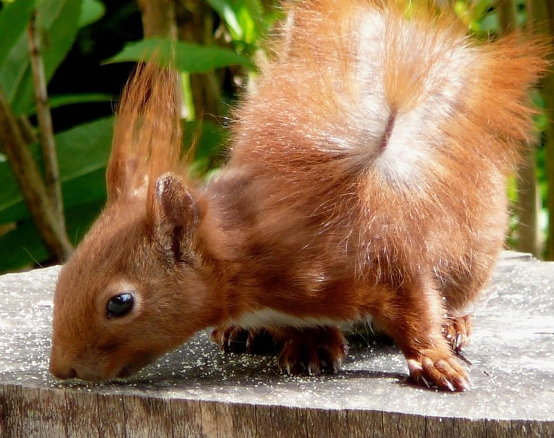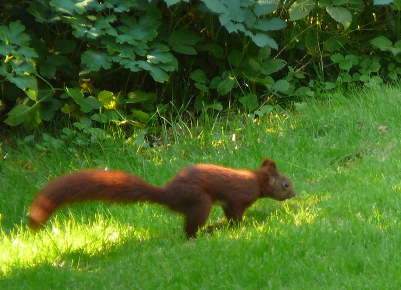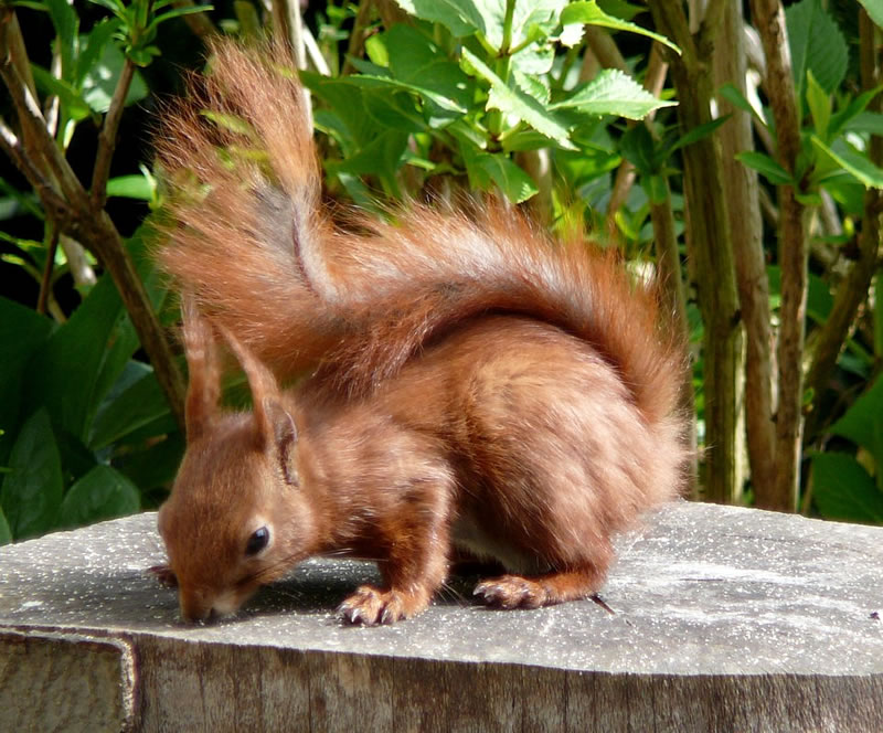 en Appelkist fien mit Zeitungspapier todeckt up de Terrass. Nu heff ik juuch minen Fründ Jan Flink vörstellt. Dat weer mi en Vergnögen! Villicht hebbt ji genau so veel Freud an em as ik. En poor Biller heff ik ok vun em maakt. Weer aver gor nich so eenfach, de Kerl is gor to gau. Mitünner harr ik blots noch den Steert up dat Bild. |