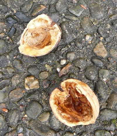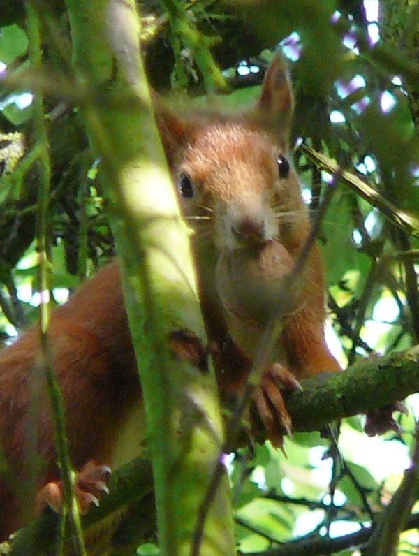 Is he denn satt, warrt Wintervörrat anleggt. Mit en Walnutt in't Muul jachtert he dörch den Goorn, kratzt gau en Lock in de Eer un versteekt de Nutt. Un denn suust he wedder na den Nuttboom un plückt de neegst Nutt. Müch mull weten, of he se all wedder findt. Ganz seker nich. Ik heff in't Johr dorna al mennigeen Walnuttboom in mien Goorn utbuddelt. Den harr ganz seker Jan Flink plant.