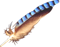 Winterdaags is in uns' Vagelhuus fix wat los: Lütte un grote Vagels kaamt anflagen, ok de Hägers, de Eichelhäher, de mit de blage Fedder an de Siet. So en blage Fedder harr Anneke je to geern hatt. Se hett söcht, se hett keen funnen. Man denn keem en Breef ut Oldenborg, hier dicht bi. Un wat weer dor in? En fründlich Gruß un fiev blage Häger-Feddern. Eenfach so. Anneke hett sik fix freut. | |