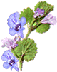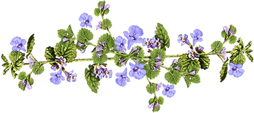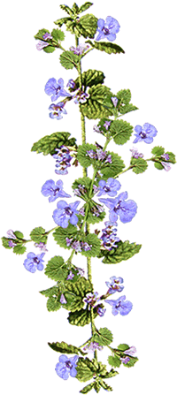 dat Kruut (Herba Hederae terristris) vun Mai bet Juli | |