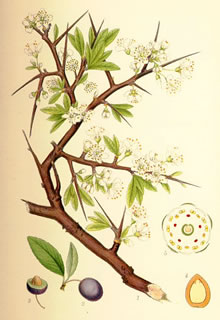 Bi't Drögen vun de Blöden geiht de Ruuch meist verloren. All Telgen endt mit en spitzig Doorn. ![]() Bekannt sünd de swatt-blagen, suurn Steenfrüchte, de Schlehen.