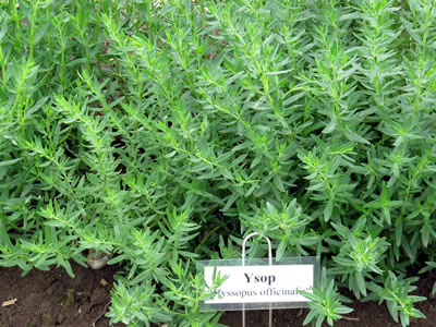 De Stängel vun'n Ysop sünd veerkant. Ik erinner, dat uns Grootvadder sienen Kohl gern in de Neegde vun Ysop plant hett. He weer övertüügt, dat denn de Kohlweißlinge vun den Kohl weg blieven. Dat wi Ysop as Heilkruut orrer Kökenkruut bruukt hebbt, dor kann ik mi nich up besinnen. Man fröher sünd de Blöden un Bläder as Heilkruut sammelt worrn. Se wörrn vun binnen bruukt gegen Geelsucht, Watersucht, Steen-Lieden un vun buten bi Besweer vun de Ogen. De Naam Ysop kümmt villicht vun dat hebräisch "ezob", wat soveel heet as "Hillig Kruut". De Plant is fröher to'n Reinmaken vun'n Tempel bruukt worrn. |