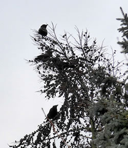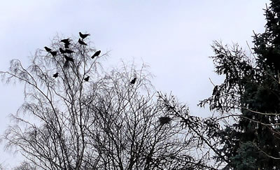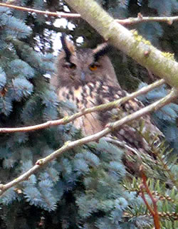 en Uhu (Schuufuu). Dorüm de Larm vun de Krein un ok vun de Ringelduven!