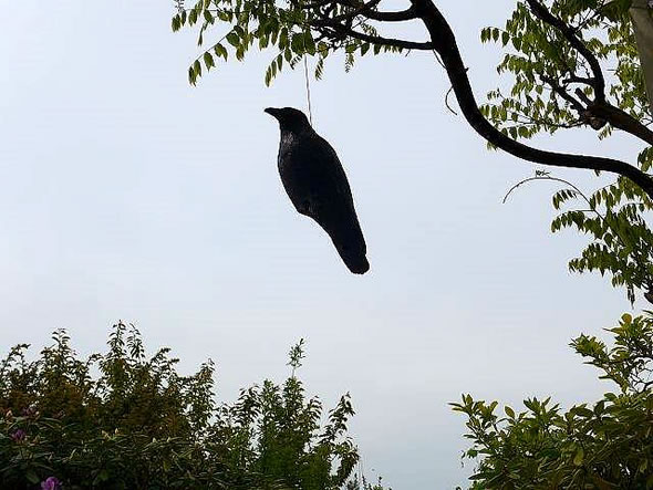 As he annerlest wedder 'n Sack vull Körners för de Lünken hool, froog he den Händler, wat de nich wat weet, womit he de Duben loos ward. Kloor wüss de Händler wat: Michel sall 'n Pohl in de Eer rammen un op düssen Pohl een vun düsse Plastikkreihen nogeln. En tweete Kreih sall he mit'n dünnet Bändsel an en Ast binnen un de swingt sik denn hen un her. Dat wirkt op tein Meter in Ümkreis, verseker em de Händler. De Kreihn sünd de natürliche Feinde un vör de harr so'n Duuv Bang. He harr tofällig noch twee vun de Kreihn an't Loger. Mondag hett Michel en Pohl trechtsoogt un anpinselt un an Rand vun de Terrass inbuddelt. Bobenop keem en Queerholt un dor sitt nu de Kreih un bewacht den Fodderplatz vun de Lünken. De annere hangt in Boom un schaukelt in Wind.