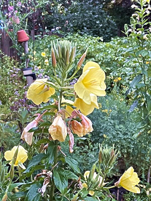 Nu hööp ik, dat nich noch en Wildswien sik över uns Kantüffeln hermaakt. Wenn dat ok faken regent, bewunnert wi aver de fröhe geile Blomenpracht dit Johr, laat uns de Kantüffeln smecken un sünd froh, dat wi vun uns Grööntüüch nich leven mööt.