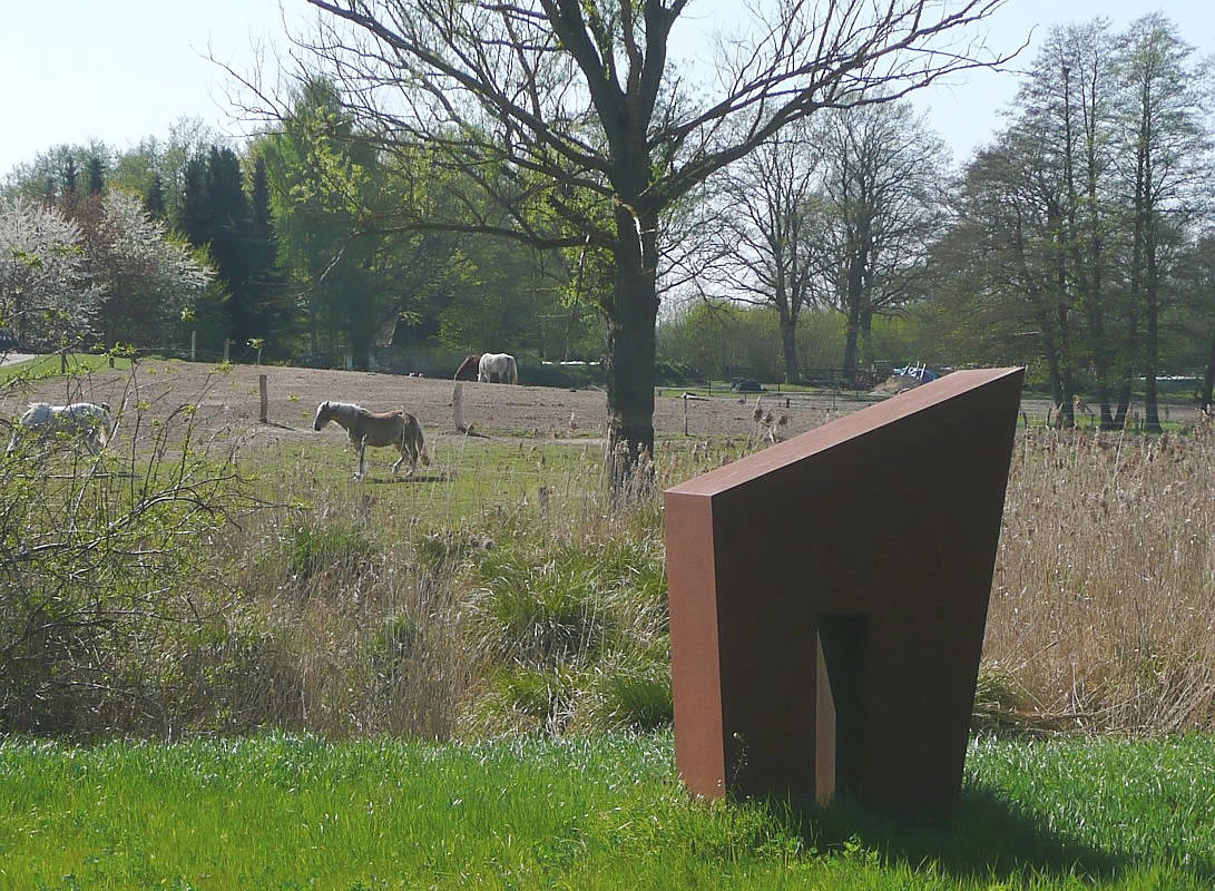 Egentlich sull uns Maifohrt an 1.Mai losgahn. Aver an den Dag weer dat rusig un kolt. De Sünn harr sik achter de Wulken verkrapen. Dor hebbt wi uns Utfohrt up den neegsten Dag verschaven. Wat en Glück! An Moorn haal uns al de Sünnenschien ut Bett. Na't Meddageten güng uns Fohrt los. Uns Ziel weer de Skulpturenpark in Groot Grönau. Ünnerwegens lüchen al de ersten Rapsfeller. De Wischen harrn en witt Schuumkleed mit Storkbloom (Wiesenschaumkraut) oder en sattgeel Kleed mit Botterbloom anleggt. In den Skulpturenpark stünnen de verscheden Objekte mank ole Bööm up enen sattgrönen Grasteppich. En lütte Beek slängel sik dörch den Park. An den Rand vun de Beek wussen seltsam hoge un grote Grashümpel. De müssen wi uns ankieken. Aver de Ünnergrund weer natt un moorig. Dat hölp aver allens nix, ik müss neger an de Hümpel. De müss ik doch nip un nau in Ogenschien nehmen un knipsen. Na uns Fraag, wat dat is, wüss nümms en Anter. Dat is seker en Oort Reet, weer de Meen. Nadem ik en poor gode Biller in mien Knipskassen harr, keken wi uns noch wieder üm.
