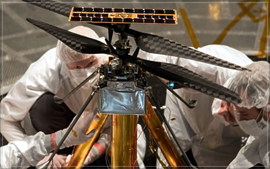 Dei 1,8 kg schwore Rotorfleiger drägg blots eine Kamera, aower kiene Instrumente. Hei schall rutfinnen, off man up den Mars uck mit Luft-Fohrtüge forschken kann. Bi dissen eiersten Flug wüss man väle Saoken nich. Dei Mars hätt eine minnere Schworkraft, den darden Deil van dei Erd-Schworkraft. Dei Mars-Atmoshäre hätt äöwer den Bodden blots 1% Druck in'n Vergliek tau dei Erd-Atmosphäre. Dat bedüüt, et giff blots minne Luft-Moleküle, mit dei dei 1,2 Meter breien Rotor-Blöre den Klaukheit-Fleiger hochdriewen könnt. Dei Helikopter bestaiht deils ut Hannels-Deile Smartphone-Deile un uck ut heil neie Komponenten. Dit Tausaome-Spill werd nu tau'n eiersten Maol in den deipen Weltruum utprobeiert. Dat Utduur-Fohrtüg stünd bi den Helikopter-Start 64,3