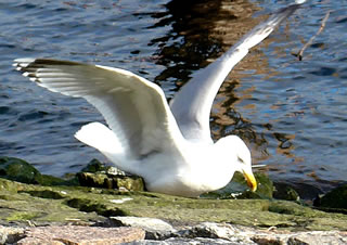 En Sturmmöwenpoor flöög vun Poller to Poller. Narms
