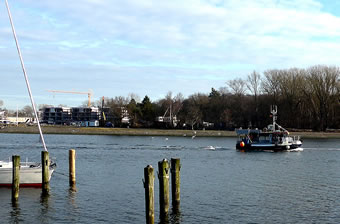 Boots-Eegner harrn alle Poller mit Steen un Draht tomaakt. Dor harr