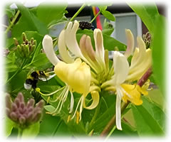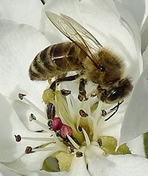 In Pagels' Goorn in Leer an't Appelspalier heff ik düsse wunnerschöne Imm knipst, de in Gesellschap vun en lierlütt Flegendeert freedlich ehr Arbeit nageiht. Op en gode Appelaarn in'n Harvst! De Biller köönt Se per Klick