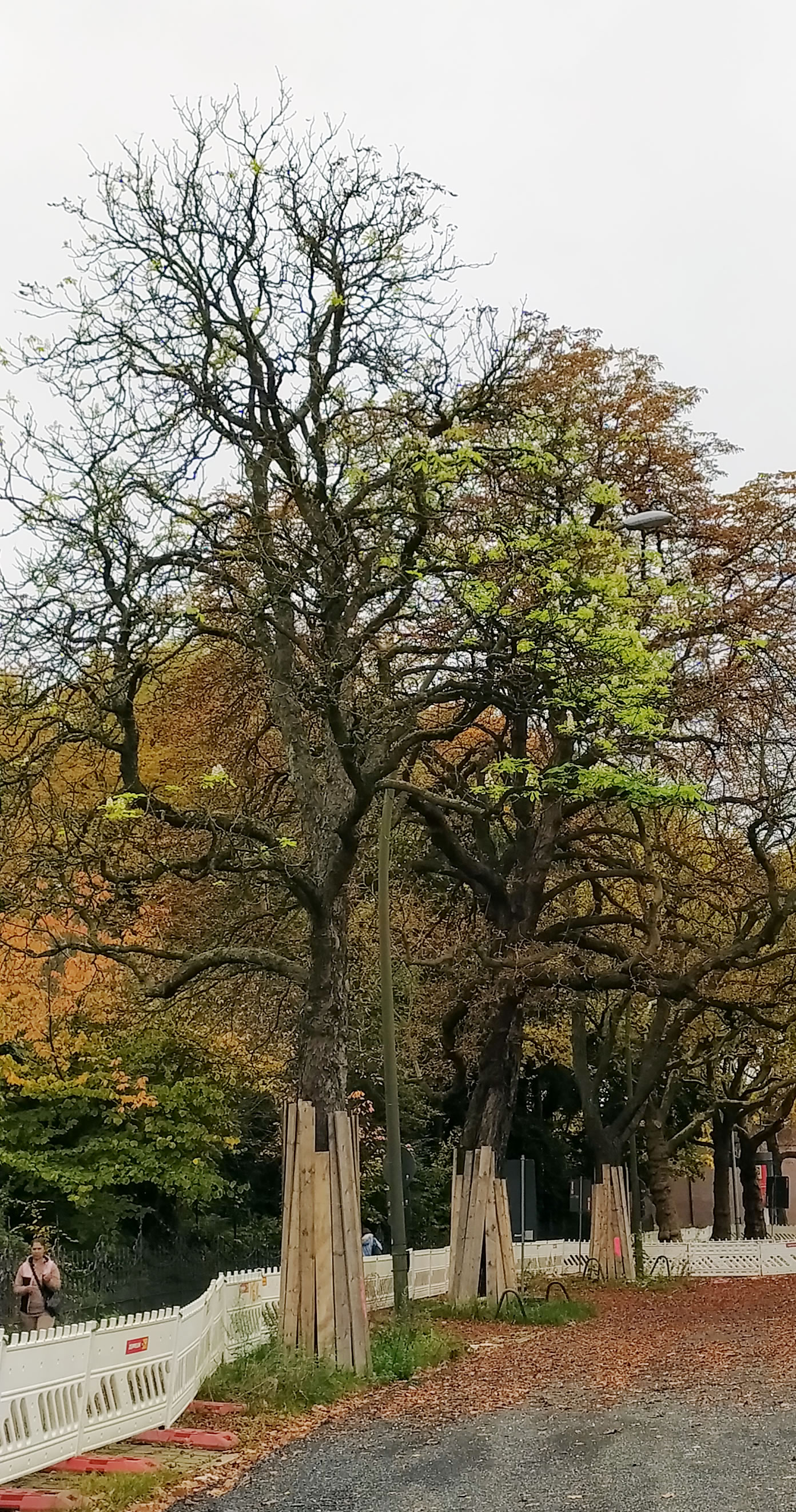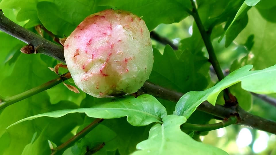 Toeerst hebb ik dacht, wat dat lütt Worms sünd, de sik op de Linnenblääd sett hebbt. Avers dat is de Lindengallmilbe (Eriophyes tiliae). De Plant süht twaars nich so schöön ut, avers se geiht nich dorvun kaputt. De Deerten befind sick in de Gallen so warrt de "Stickels" nöömt, de op de Linnenbläder in de Hööcht staht. De Gallmilben sünd bloots 0,1 bet 0,2 mm lang un 20-50 µm (also 0,02 - 0,05 mm) breit. Se hebbt jüst 4 Beens, tellt avers as all Milben to de Spinndeerten. Se sluupt na 2 bet 3 Weken ut de Gallen un laat sik vun'n Wind wiederdragen na de neegste Linn lütt noog sünd se ja. De Biller köönt Se per Klick