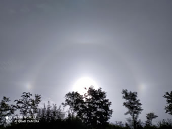 so Eerst nu heff ik sehn, wat dor allens to sehn weer: de kumplette 22-Grad-Halo mit bavern Berührungsbagen un bavenöver noch wat (Bild links in'n roden Krink) is dat de Zirkumzenitalbagen orr etwa de rore, extrem rore 46-Grad-Halo? Ik harr dat al an'n Himmel schemern sehn un heff dat Handy eenfach hoochhollen... Sowat Schööns un Besünners faat mi so an, dat mi nu noch de Tranen kaamt. De Biller köönt Se per Klick