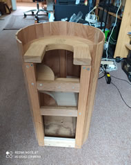 12.9.21 ....Dat Igelhuus Dat weer en Enkeltstück, Handarbeit, mien Schatz hett dat in't Schaufinster sehn un mitnahmen. Dull solide warkt, mit Platz för mehr as een Swienegel, leevtallig opdeelt in en richtigen Grundriss mit dree Ruums. Dat weer doch wat för Ewalds lütten Goorn! Dor wahnt ja en Swienegelfamilie, Öllern un en Handvull Jungswienegels, de Ewald jümmers fodern deit. Un för'n Winter bruukt de ja en Quarteer. Ewald maakt jümmers wat in en Eck mit dröög Loof un en Plane, man hier is ja noch mehr Komfort! Wi also hen na Wilhelmshaven, dat Huus bi Ewald afgeven un in'n Goorn platzeert. Ewald meent ok, avends weern de lütten Swienegel al dor west un harrn dat ünnersöcht. Introcken is natüürlich noch nüms is ja noch nich Winter. Avers se kiekt dat al as ehrn Besitt an. Is ja ehr Reveer dat dor miteens en anner intreckt, mööt se sachs nich beförchten. De Biller köönt Se per Klick