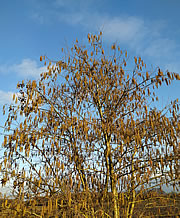 24.10.21 ....Harvst in Pagels' Goorn Nu is de Harvst ok in Pagels' Goorn in Leer introcken, un de bunten Klören kaamt meist bloots noch vun dat Loof. Dree wunnerschöne Stauden sünd mi opfulln, vun de ik bloots een kennen do: den Miscanthus, dat so nöömte "Chinaschilf" in dat Bild rechts. Dat Grasgewächs stammt ut Asien un blöht eerst laat in't Johr mit faserige, pinselige Blöden. Kurioos: Miscanthus is en echte "Energieplant", wieldat