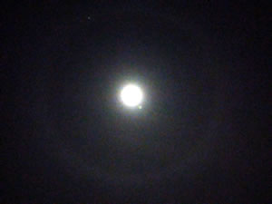 Na dat schöne kole Wekenenn seh ik merrn in de Grottstadt miteens en Nevensünn en linke Nevensünn, as henmeißelt an'n Heven, so intensiv un krall as man een. Bloots links vun de Sünn weern Wulken, dorwegen geev dat bloots düsse een. Dor baven sünd Ieswulken. Un in de Nacht de vulle Maand wiest en Hoff. Bloots swack to kennen, en dünne helle Ring üm den Maan. Rundüm. De Maan un de hellsten Planeten sünd noch to sehn (in de Stadt sühst ja mehrst sowiso nix anners), man de Halo maalt sik in unsichtbore dünne hoge Wulken vun Ies. Dat Weder sleit üm. Warrt natter un milder. De Biller köönt Se per Klick vergröttern! Marlou Lessing |