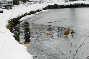Düsse söten Deerten heff ik hüüt blangen de Straat sehn junge Robustrinder, de dat hele Johr buten sünd. Ik heff glieksen en Riemel op ehr maakt. Is Februar de Küll is aasig, Dat Bild köönt Se per Klick vergröttern! Marlou Lessing |