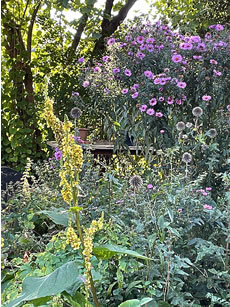 gor nix mehr to sehn. Also geiht mien Blick oppen Grund. Un dor strahlt nu de wunnerschönen grönen Steerns' vun mien leefsten Tweejohrsblomen op mi to: Hunnenblööm, Wullblööm, Nachtkarsen un Fingerhööt in de Farv vun de Höpen, de Vörfreud op dat, wat kümmt.