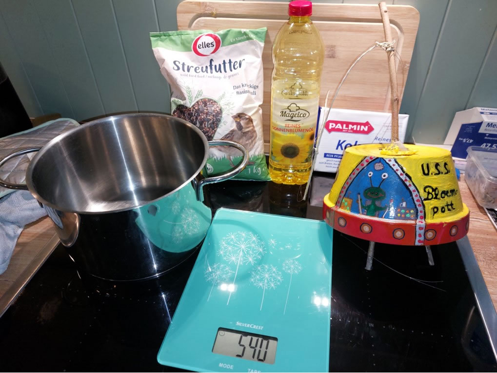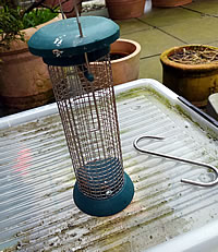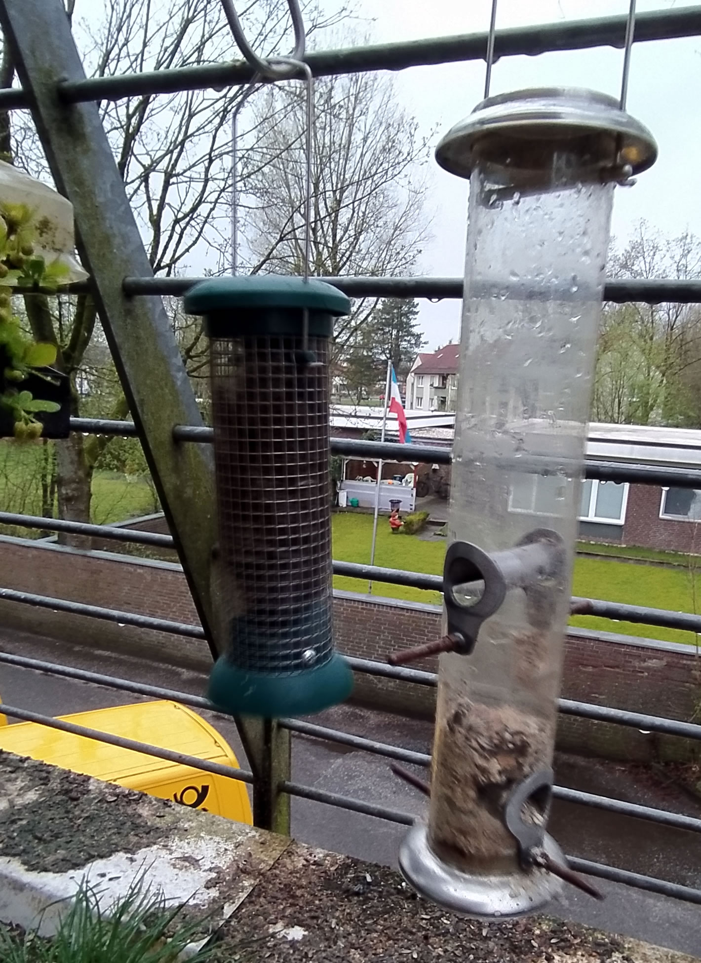 Ik heff ehr utschüddt ut den Deckel baven, un se is foorts wegsluppt. De Vagelröhr mutt ik reinlich maken un höger hangen. De Muus is op mien Terrass willkamen, avers se schall vun dat leven, wat de Vagels rünnerfalln laat. De Biller köönt Se per Klick vergröttern! Marlou Lessing |