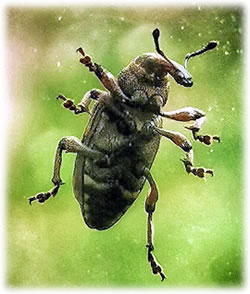 Dor, woneem de Holtweg sik langsam in'n Woold verleert, leevt en lüttje swattblaage Gesell: de Wooldmistkäver. Woso krabbelt he op den Weg rümmer? Wieder vörn liggt en Aartgenoss vun em, tweipeddt un dood! Woso geiht he nich in't Gebüsch?