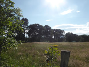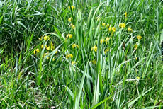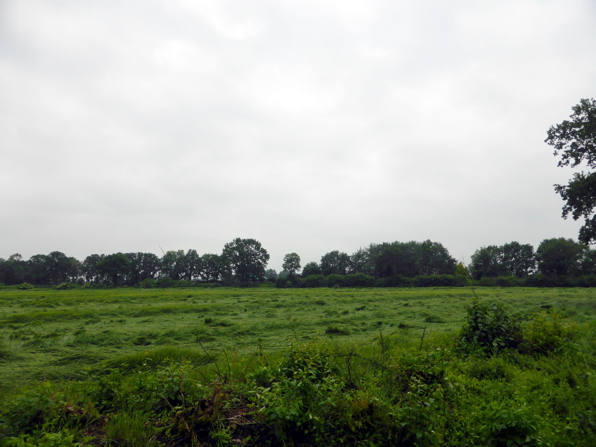 Up den Diek blöhn al de eersten gelen Diekrosen. Wi hebbt se ok Mummeln nöömt. Dat weer en ganz anner Bild as in Hoochsommer. Aver de Sommer keem al hooch, de Luft weer warm un de Bööm woorn gröön.