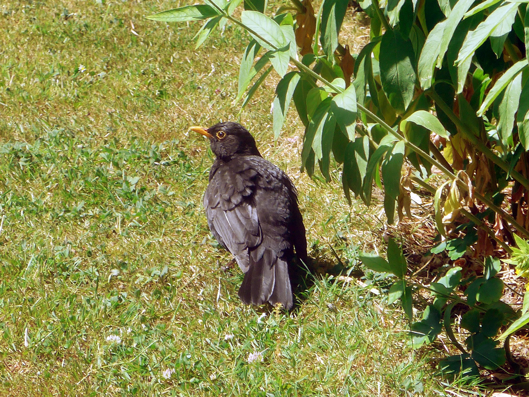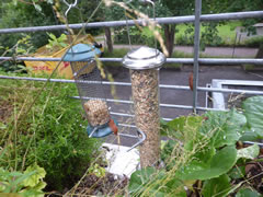 Bi de Goornarbeit verfolgt se mi regelrecht. To un to nüdelig, fladdert se mi üm de Fööt un sett sik in de Rhododendren rin. Wenn ik in'n Sommer wat graven orr harkt heff, sünd se ünner Garantie dor un kiekt, wat dor nich wat för ehr rutspringt meist as de Möwen op'n Acker. Un nu hebbt se ok nipp in't Oog, wenn ik Foder nalegg. "Lütt Broder is watching you"! Geern doch! Dat Bild köönt
