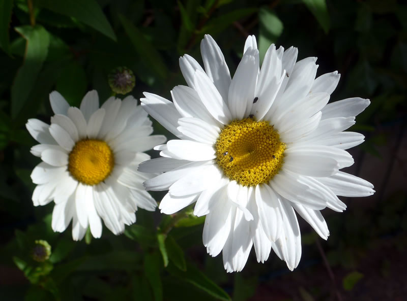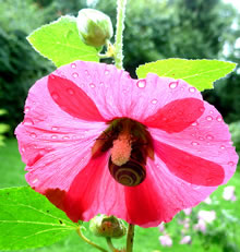 Miteens wöör dat ganz hell ünner den Blomenschirm. De beiden Gäst reven sik de Oogen. (Bloots bildlich; reaal köönt dat beide nich.) De Sünnenschien blenn richtig! As eerst möök sik de Imm mit luut Gebrumm up den Weg. Nu rekel sik de Snick, streck ehr Föhler ruut un ünnersöch de Laag. Koppöver möök se sik up den Weg un kladder vörsichtig an den Blomenstengel na ünnen. Ehr Föhler harr se richtig utstreckt. Dat Brummen vun de Imm weer noch to höörn. So harrn de beiden Deerten den Regen goot överstahn. De Biller köönt Se per Klick