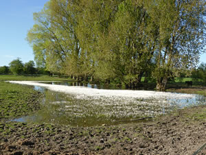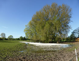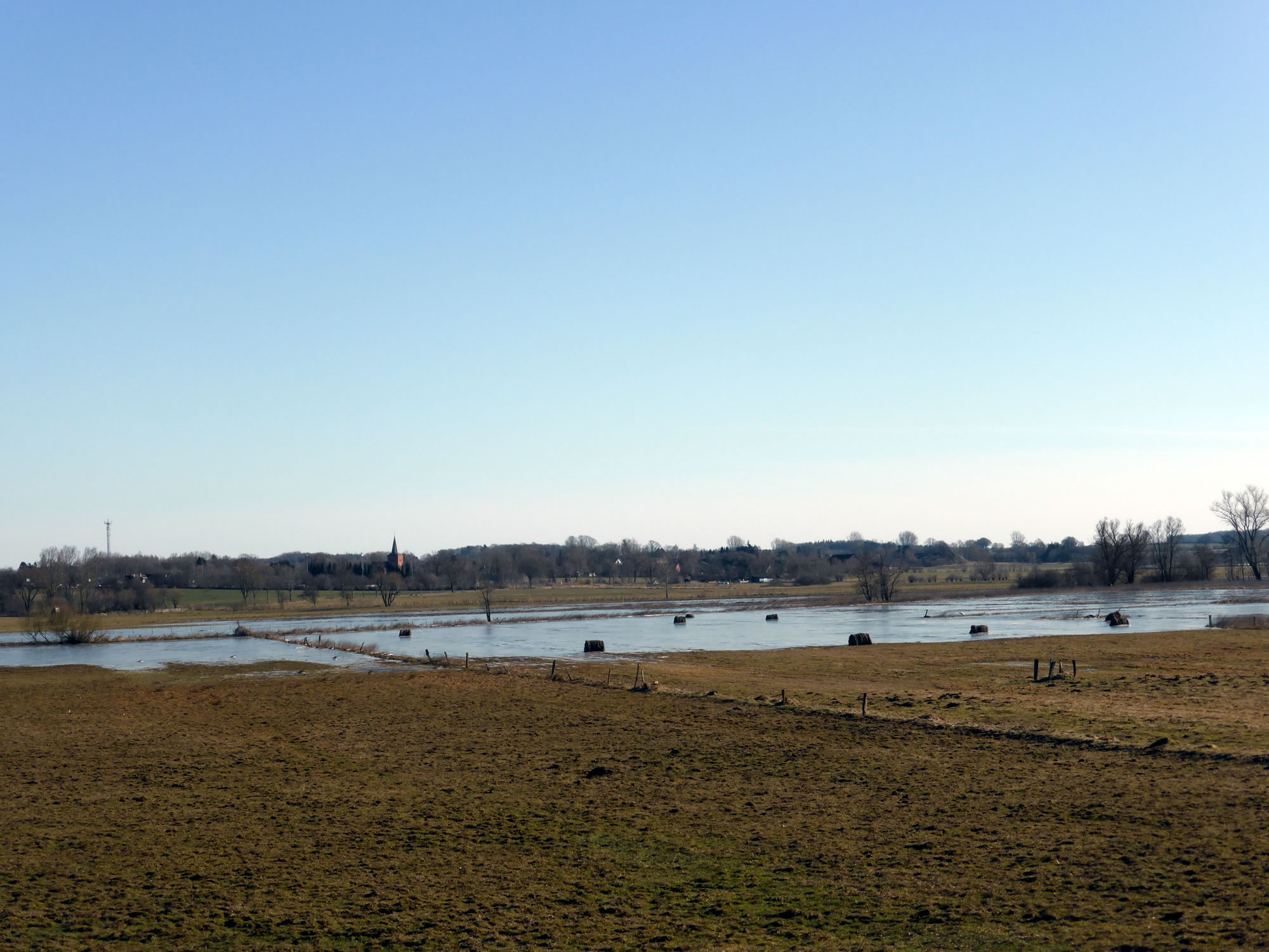 Jümmers noch staht mennig Wischen ünner Water, un mennig Watervagels verlusteert sik welig dor, as höör ehr de ganze Welt to. Bi Gnissau överswemmt de Traav de Wischen; mennig Strohballen versuupt in't Water. En lütt Moor bildt sik op de een Siet vun den Knick; hier steiht sachs faken dat Water. Süht trurig, troostlos ut. Avers achter de Kulissen deit sik wat! De eersten Bööm hebbt al so'n Schemer an Stamm un Telgen, so'n Gröön, dat kunn vun Moos stammen avers ok vun wat anners... De Biller köönt Se per Klick