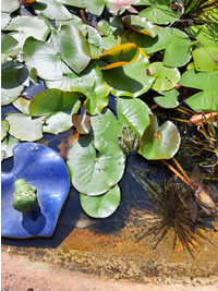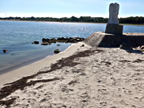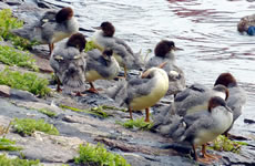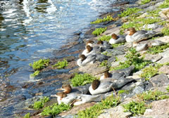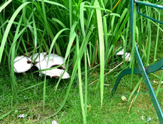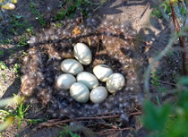 Nu müssen wi natüürlich ok noch up de Insel. As wi över den Steeg güngen, hebbt wi ut Versehn en Aant vun ehr Nest verjaagt. Acht Eier legen dor in en fien utpolstert Nest. De acht Lütten, de later sluppt sünd, hebbt wi leider nich sehn köönt. Aver de Diek hett uns wedder goot gefullen. Dat is rein to'n Wunnerwarken, wat Harald dor inricht hett! Wi weern wedder vertövert un freut uns al up den neegsten Besöök.