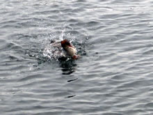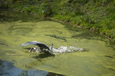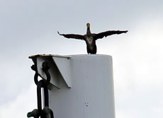 Mit den Fisch in't Muul flöög he torüch na sien hoge Warte op dat Rickels un wörg den Fisch dor denn seelenruhig dal.