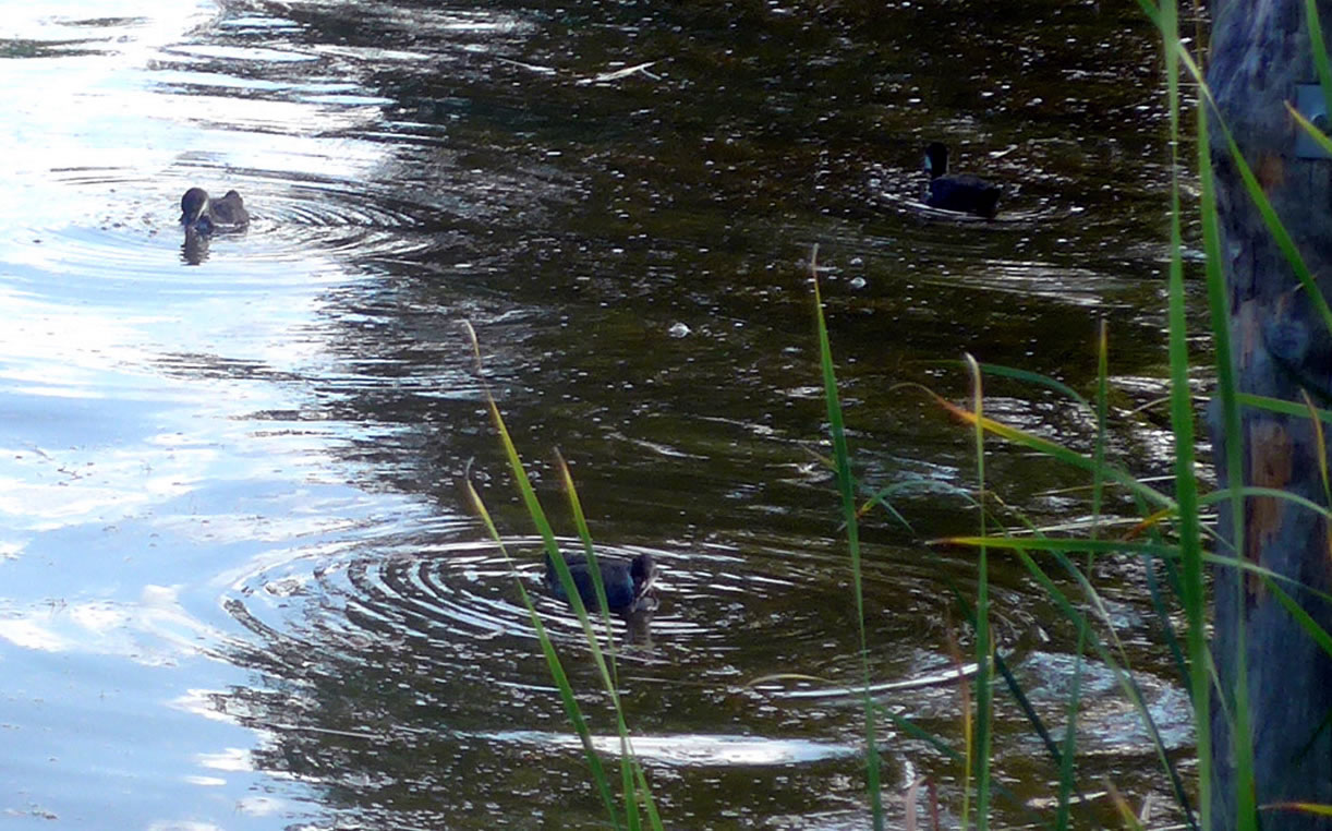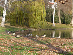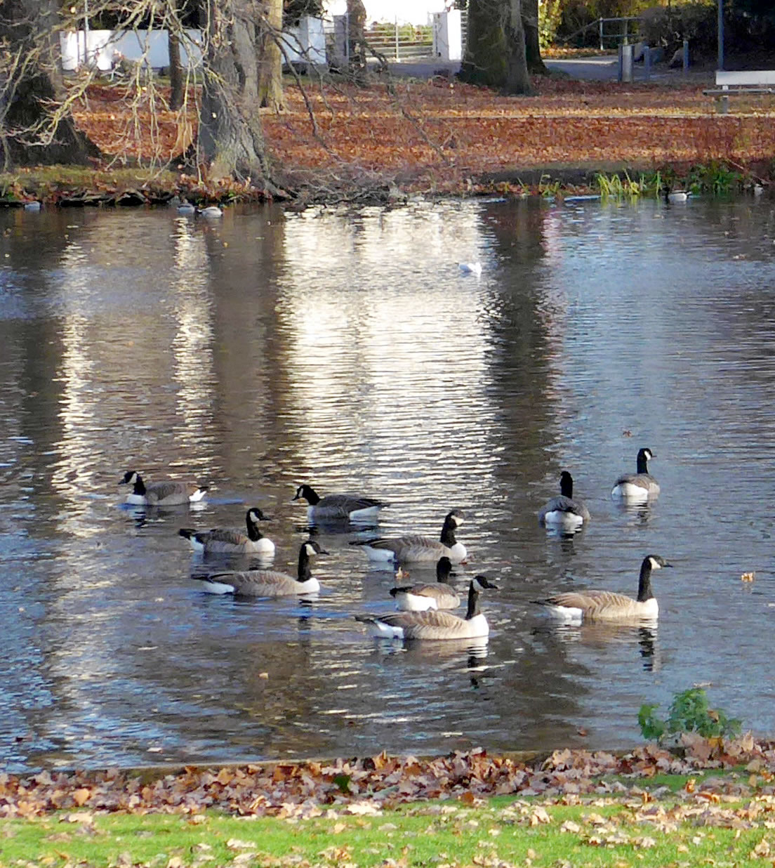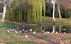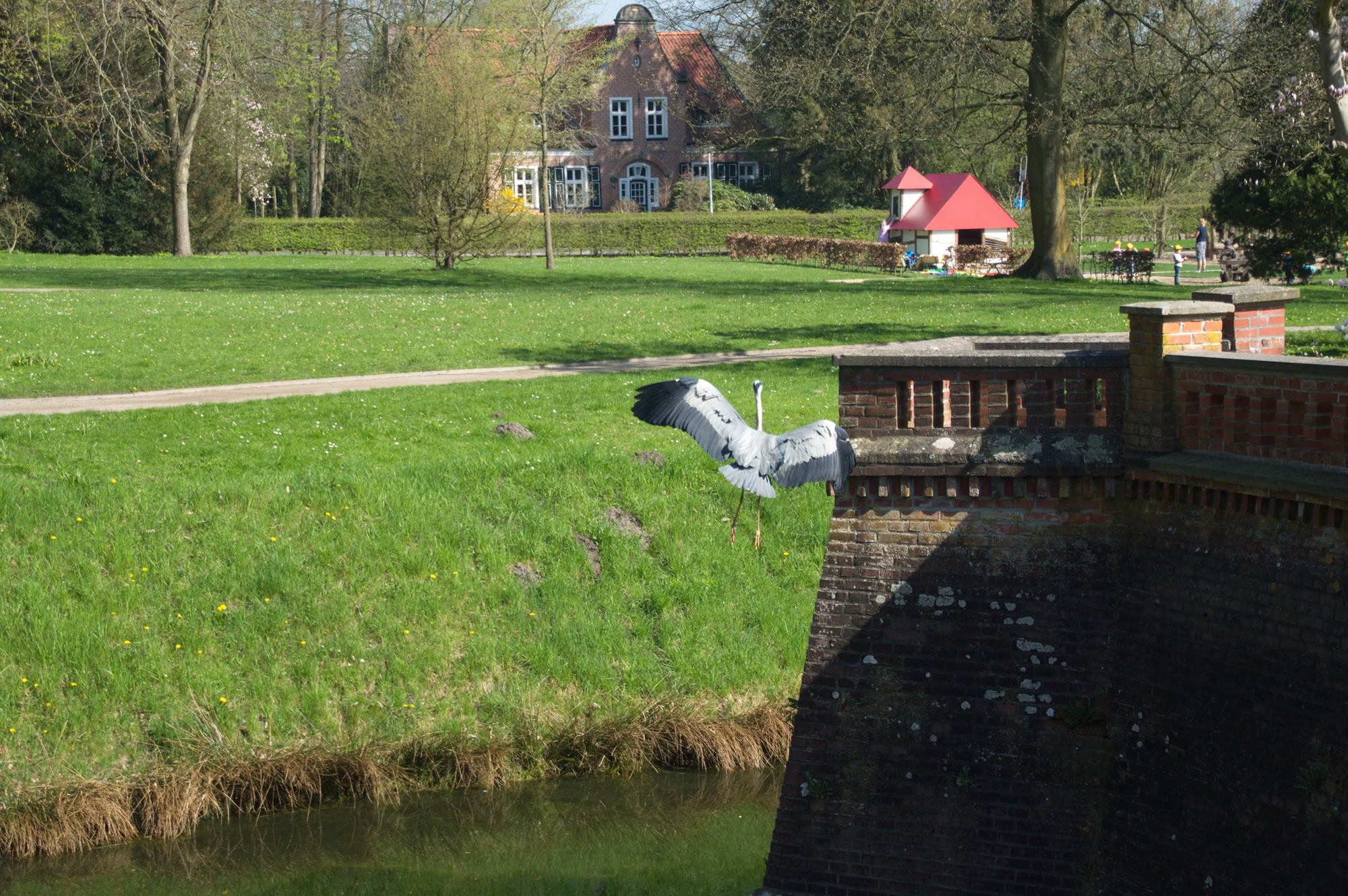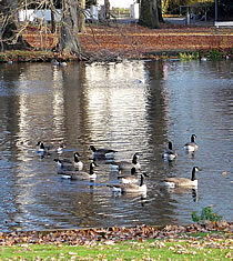 över uns Köpp. Ünner uns Water harr de Aalbek noog. Dor müss sogoor en niege Stratenbrüüch buut warrn. De Verbinnung vun de Aalbek mit den Fischereehaven na de Oostsee geev dat ümmer noch. So müssen wi den Footweg vun den Parkplacken na den Vagelpark inslaan. Geschrei vun de verscheden Vagels ut alle Welt weer al wiet to höörn. De Biller köönt Se per Klick