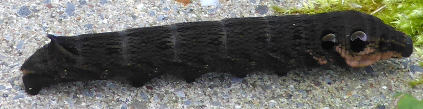 Nadrag: Nu heff ik vun stückerwat Lü seggt kregen, dat düsse Ruup mal en "Mittleren Wienschwärmer" warrt. En Falter. Wenn Se den Naam googelt un de Biller vun de Ruup vergliekt, warrt Se ok övertüügt ween. Nee, wat gifft dat doch för Deerten. Naja, de sünd ja nich afsichtlich so... so kurios. |