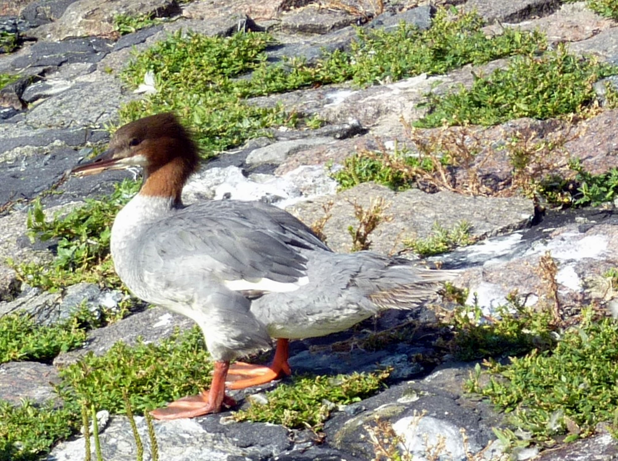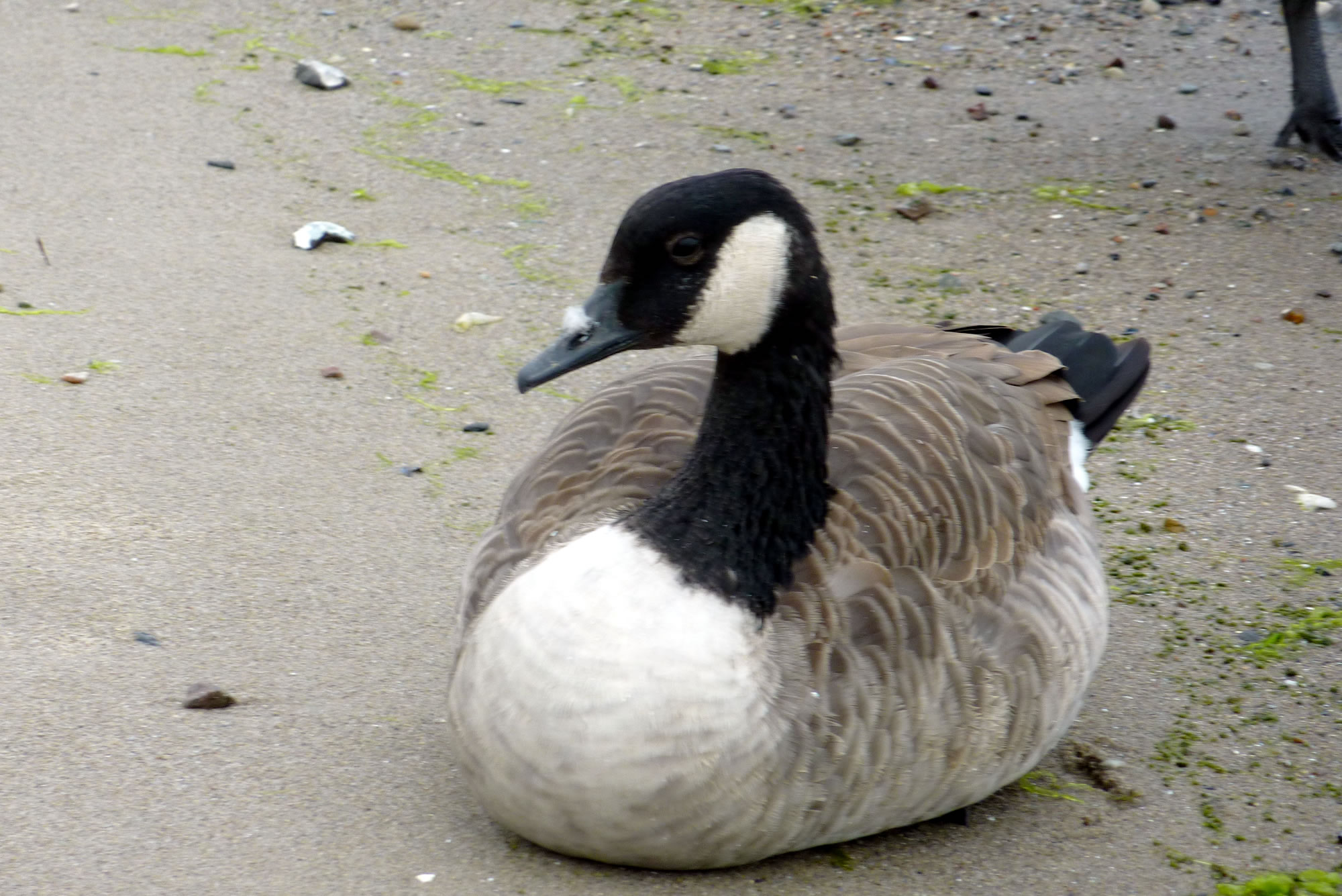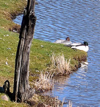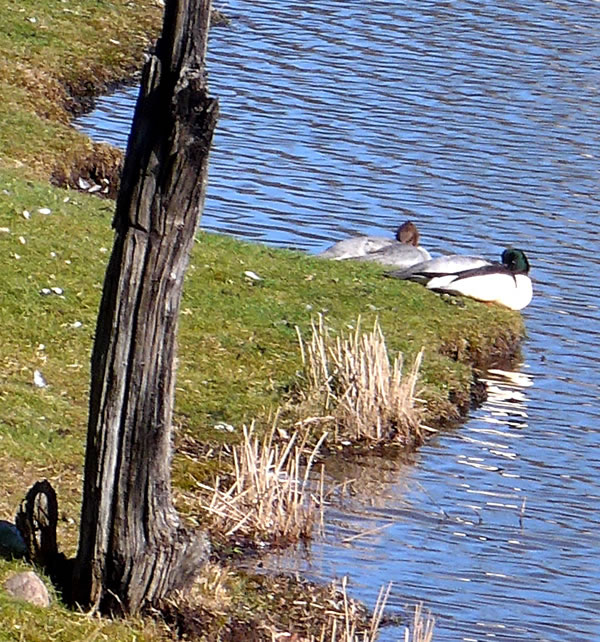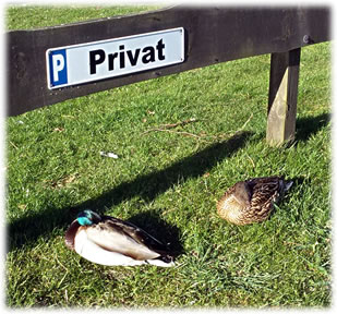 Un annerletzt bün ik op en Parkplatz düt Aantenpoor wies worrn: Se hebbt hier ehrn Privatparkplatz, aver wirklich so richtig privat! Dor leggt se sik ok dal. Bloots de Aanterich pliert noch so'n beten mit een Oog. Dor schall mal een kamen un sik truun, hier schnöde en Auto hentostelln! Dat truut sik ok keen. Ja, mit Aanten kannst jümmers wat beleven. Dat Bild köönt