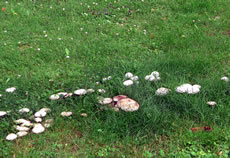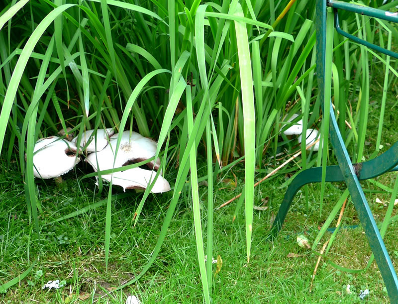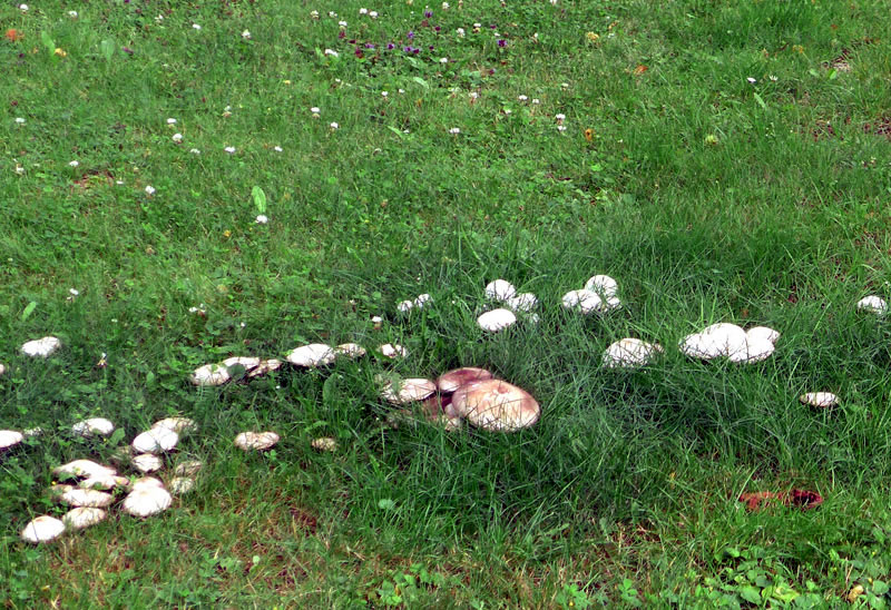Den Dag besluut ik ümmer mit enen Rundgang dörch mien Goorn. Hüüt bin ik twee lütte Poggenstöhl wies worrn, lütte witte Champignons. Dor müss ik doch wieder uppassen, Villicht kemen dor noch mehr. Twee Daag later weern al ganz veel ut de Eer braken! Dat weer ja all en richtige Mahltiet. Gau haal ik mi en lütte Schöttel un plück de Poggenstöhl. Stolz wies ik se mi Mann. "Hüüt giff dat en godes Meddageten!" Mien Mann keek sik de Poggenstöhl scharp an: "Sünd de ok echt?" "Ja, dat sind Champignons. Kiek mal de rosa Lamellen!" Ik möök mi an de Arbeit un heff se putzt. Denn kemen se in de Pann. Dor steeg mi en egenordigen Ruuch in de Nääs. Sulln dat doch kene echten Champignons ween? Denn keem mien Mann in de Köök. "Segg mal de Champignons rüük aver komisch. Dat rüükt hier ja na Karbol!" Ik röög de Champignons nochmal üm. Dor kreeg ik ok den Ruuch vun Karbol in de Nääs. Weer ik doch noch wedder up de falschen Champignons, up de Karbol-Champignons rinnfullen! Dat weer mi vör eenige Johrn al mal passeert. Gau heff ik de Pann sauber maakt. Dat weer gor nich so eenfach. Achterna heff ik de Pann up de Terrass stellt. Uns lekere Pilzmahltiet weer in't Water fullen. De Biller köönt Se per Klick