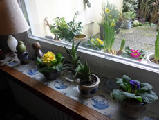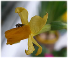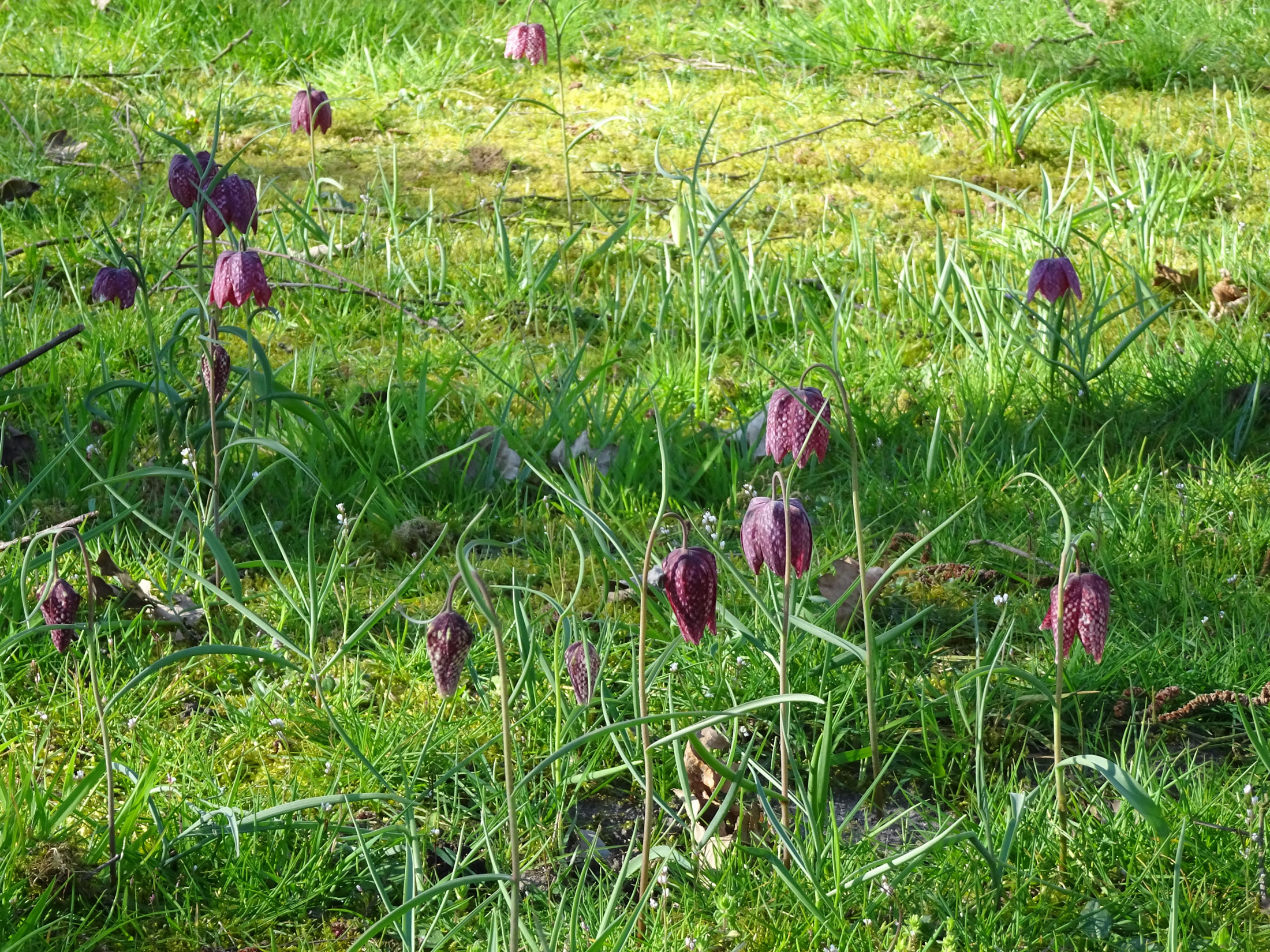 Aver Kalli kiekt en beten bedripst. Fraagwies öögt he den Boom hooch, de noch kahl is. Wat drifft em üm? Wüllt sien Hehns nich so as he? Wiest se em de kole Schuller? Orr is he bloots benaut, wieldat de smucken Schachbrettblomen al afblöht un verwelkt sünd? Dor mutt he nich lang töven, veel annere Blomen staht nu all in de Startlöcker! De Biller köönt Se per Klick