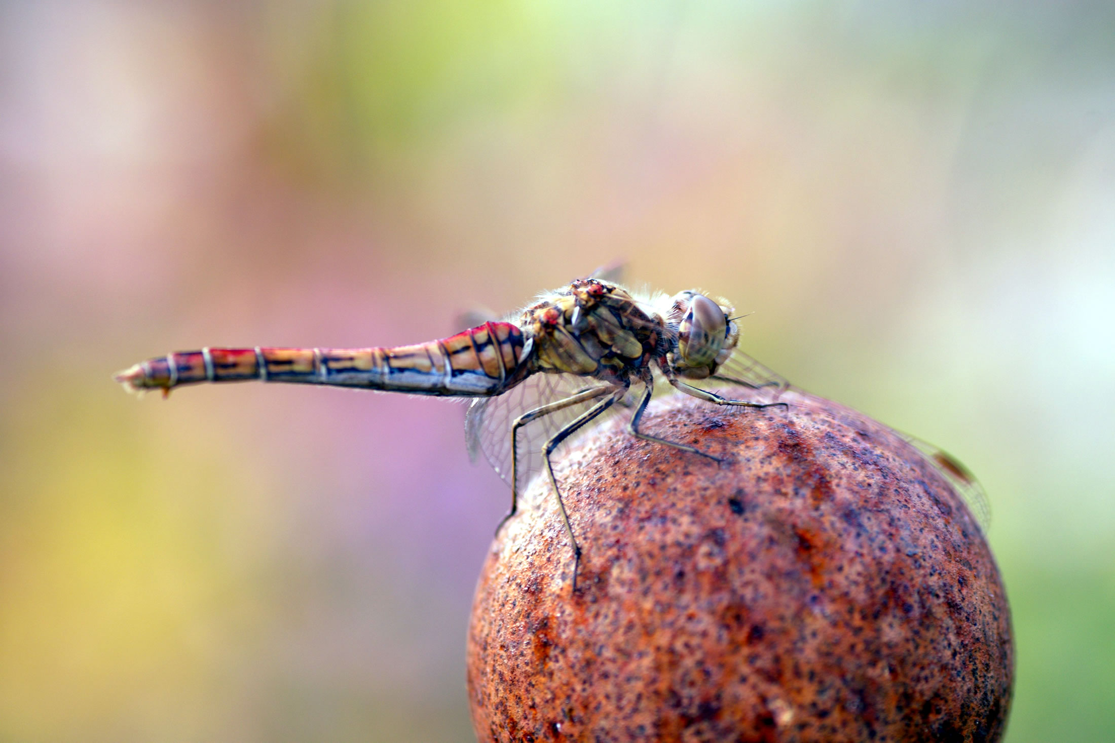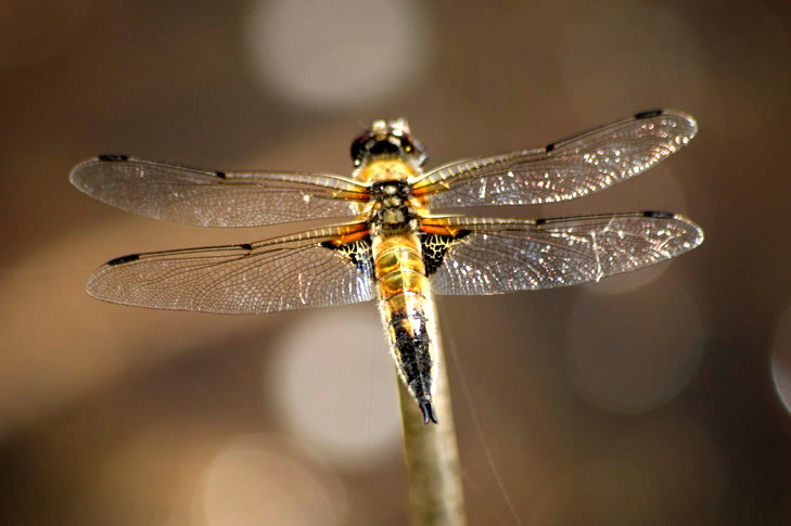 As en Fotomodel rustel se mit de Flüchten, leet sik vun achtern un vörn fotografeern. Ik dach an Morgenstern sien "ästhetisches Wiesel", dat sik vunwegen den Riemel op en Kiesel setten dä. De Libell dä dat för de Klöör. Deerten hebbt Smack! De Biller köönt Se per Klick